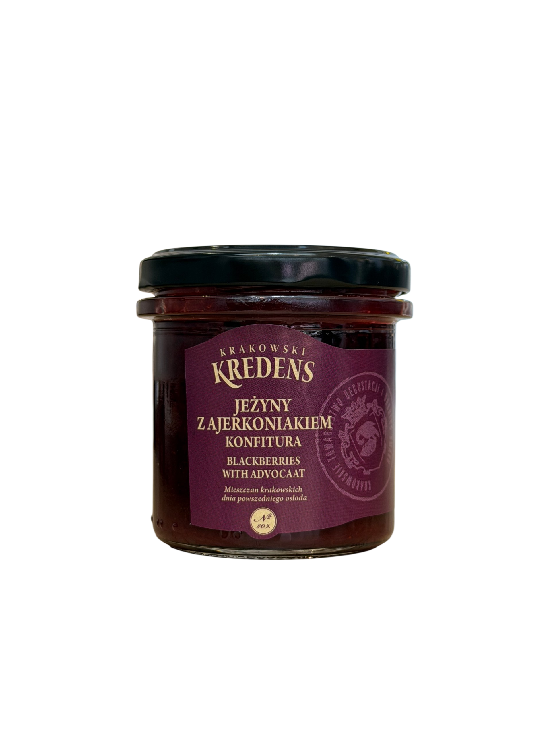 Skład: Jeżyny (na 100g użyto nie mniej niż 160g jeżyn), cukier, regulator kwasowości: kwas cytrynowy, ajerkoniak